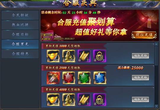 合服累充:完成指定额度即可领取超值豪礼,助您战力飙升