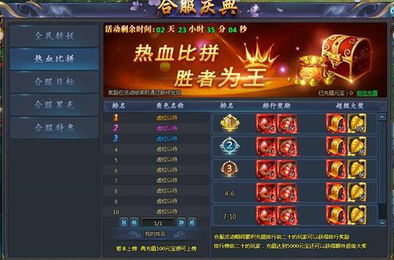 合服活动期间累计充值排行活动,高级宝石、装备封印石、红装材料等你来拿!