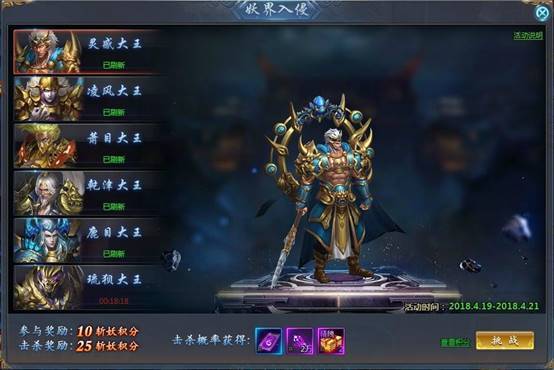 活动期间击杀激战BOSS以及妖界入侵BOSS可获得积分