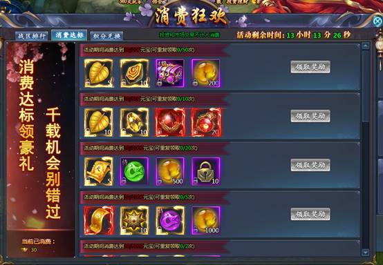 活动期间消耗元宝的30%将在活动结束后返还,2月8日可领取