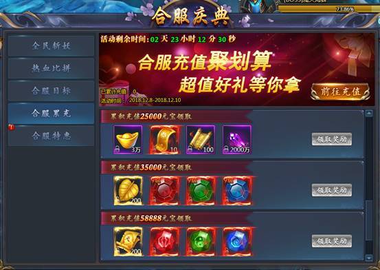 4)合服累充:完成指定额度即可领取超值豪礼,助您战力飙升