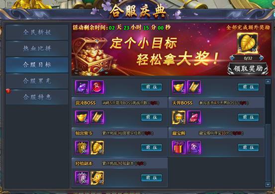 3)合服目标