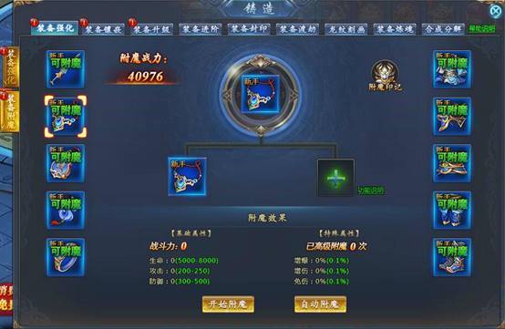 3、全身普通附魔和高级附魔达到一定次数要求可激活附魔印记;