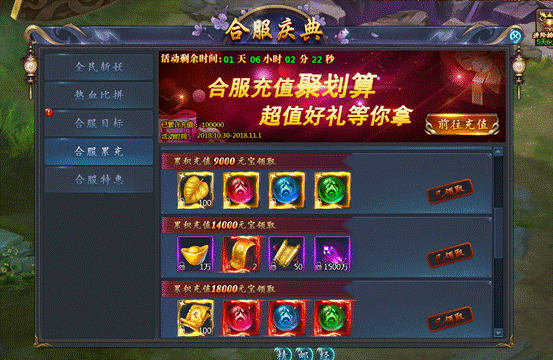 合服活动期间累计充值排行活动,高级宝石、寻宝图、极品兑换券、天书残卷等你来拿!