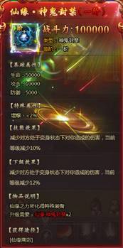装备不可拆卸,可进行升级,升级需要消耗相对应的仙缘装备;