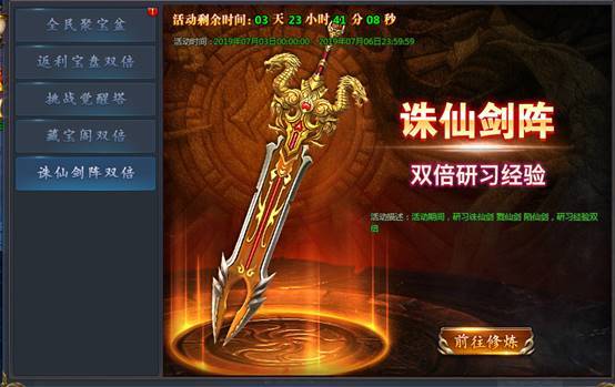注:诛仙进阶榜活动期间,诛仙剑、戮仙剑、陷仙剑修炼获得的进度经验双倍