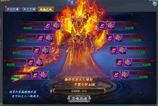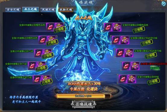 战魂是我们游戏中一大特色玩法,通过达成不同的条件可以开启战魂,出战后不仅能带给主角强大的BUFF和技能,还能增加大量基础属性。